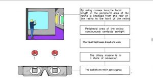 - Once the refractive error is corrected, the CGI projected through the parallel light is naturally focused on the retina (macula) without any accommodation.