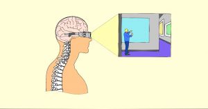 - No physical screen needed. When CGI is projected onto the retina, a virtual screen will appear in front of the user and move freely with the line of sight. It can put it on the wall, on the ceiling, in mid-air or wherever one likes.