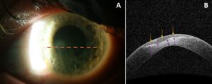 - ↑ 2.0 2.1 2.2 2.3 2.4 Bonnet C, Debillon L, Al-Hashimi S, et al. Anterior segment optical coherence tomography imaging in peripheral ulcerative keratitis, a corneal structural description. BMC Ophthalmol. May 25 2020;20(1):205. doi:10.1186/s12886-020-01466-1