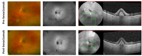 - ↑ 15.0 15.1 [Chang L. et al. (Jul 2008). “Bevacizumab treatment for subfoveal choroidal neovascularization from causes other than age-related macular degeneration”. JAMA Ophthalmology, 126(7): pg 941-945. doi: 10.1001/archopht.126.7.941]