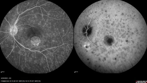- ↑ [Invernizzi A. et al. “Twenty-four-month outcomes of inflammatory choroidal neovascularisation treated with intravitreal anti-vascular endothelial growth factors: a comparison between two treatment regimens”. Br J Ophthalmol. 2020 Aug;104(8):1052-1056. doi: 10.1136/bjophthalmol-2019-315257.]