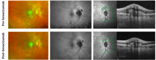 Treatment of I-CNV with control of the underlying uveitis and intravitreal anti-VEGF agents can help to preserve and improve vision. One summary of the literature on long-term outcomes after anti-VEGF treatment of I-CNV included studies with follow up of time periods ranging from six months to 5 years with a variety of underlying posterior uveitic etiologies. Among these studies, improvement in logMAR visual acuity of approximately 0.3 units was common after anti-VEGF therapy (between 1-5 injections) [20] In one retrospective case series of individuals with PIC who were treated with anti-VEGF injections without systemic therapy, there was a 50% recurrence rate. [21]
