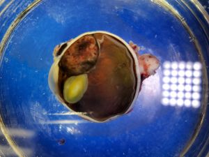 After removal of the eye, either fine needle aspiration biopsy or fixated tissue may be submitted for genomic expression profiling.