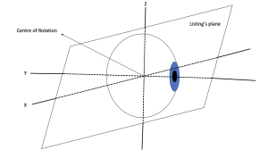 As per this law, all eye orientations can be achieved starting from a primary eye position. Different gazes can be achieved by moving around the axis within the Listing’s plane.[41]
