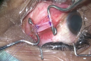 Muscle weakening procedures include recession, myotomy, myectomy, dissinsertion or denervation.[66] Figure 12 shows intraoperative recession of lateral rectus muscle.