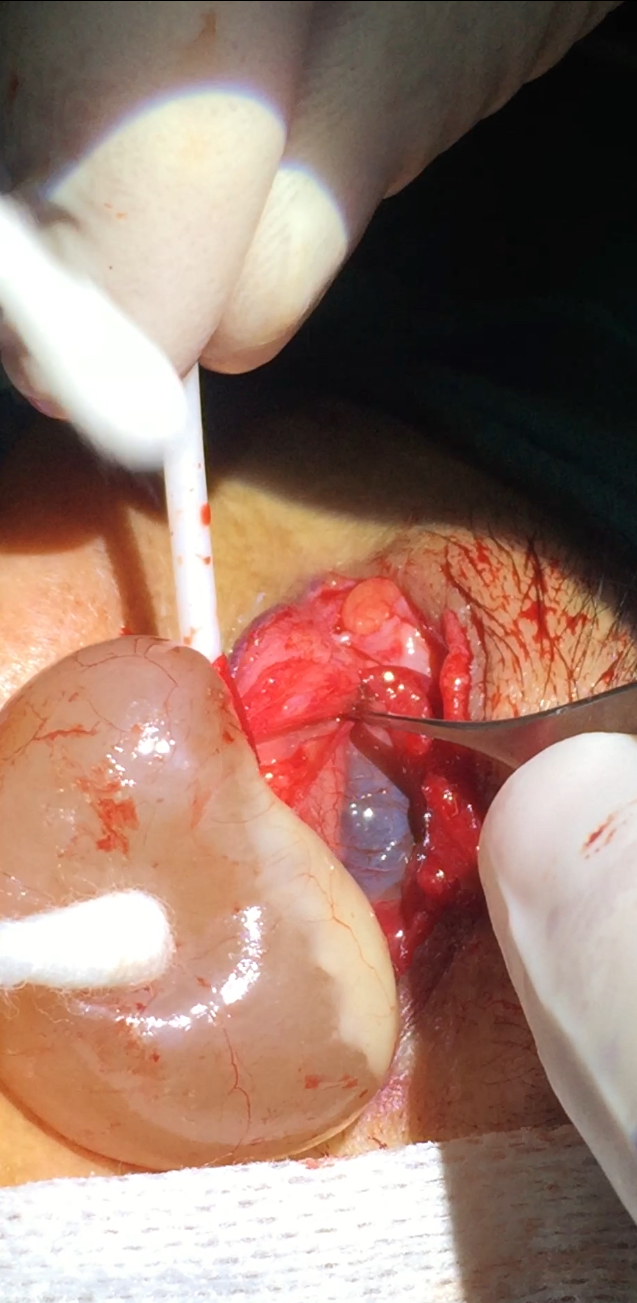 A huge WGDC of the upper eyelid is removed through a lid crease incision.