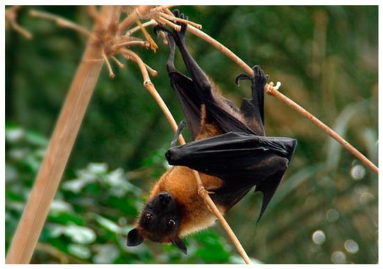 Pteropus giganteus, the main reservoir of Nipah Virus. Open access under terms of the Creative Commons License: https://creativecommons.org/licenses/by/4.0/ Original figures available at: https://doi.org/10.3390/ani13010159