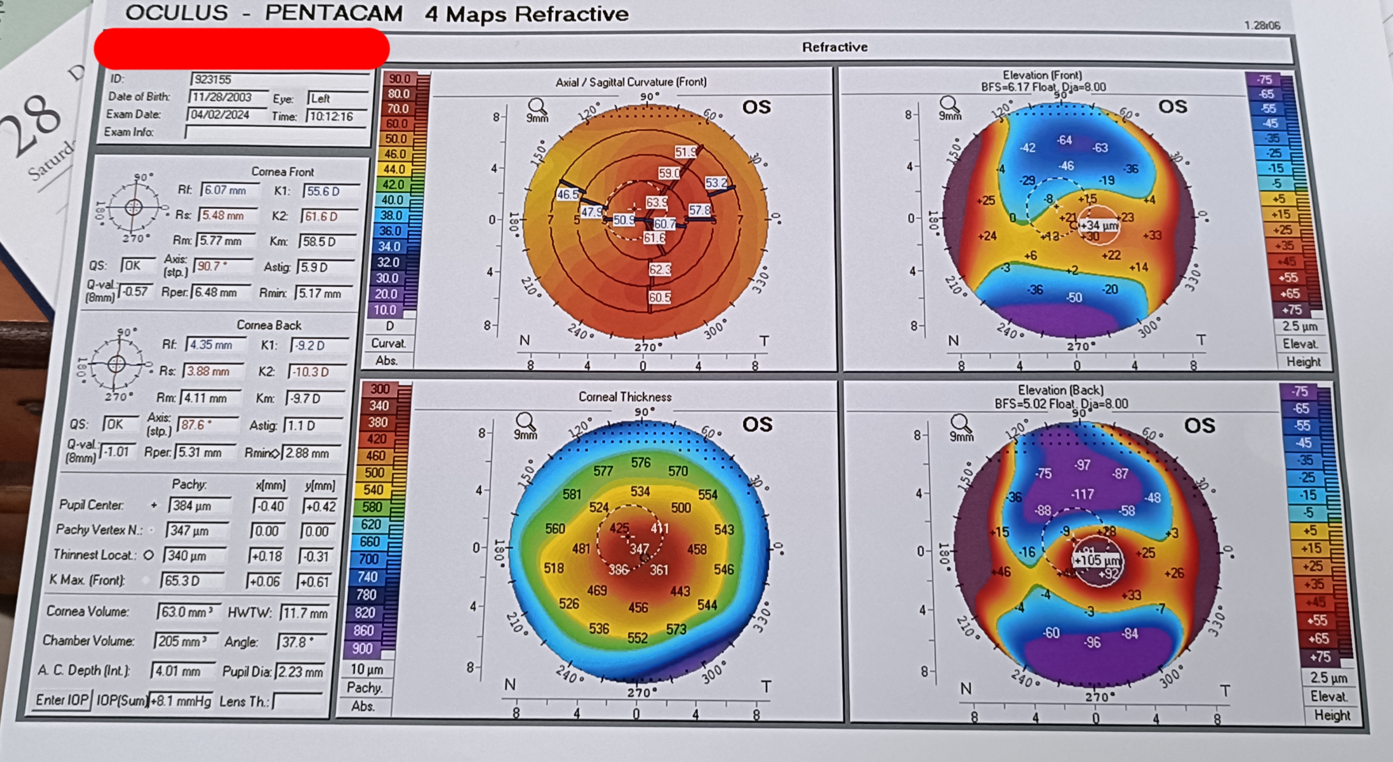 4 Map Refractive Pentacam image of a patient with advanced keratoconus