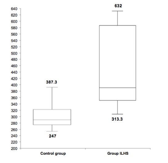 Histogram with the distribution of the final depth values of group of ILHS and control group.