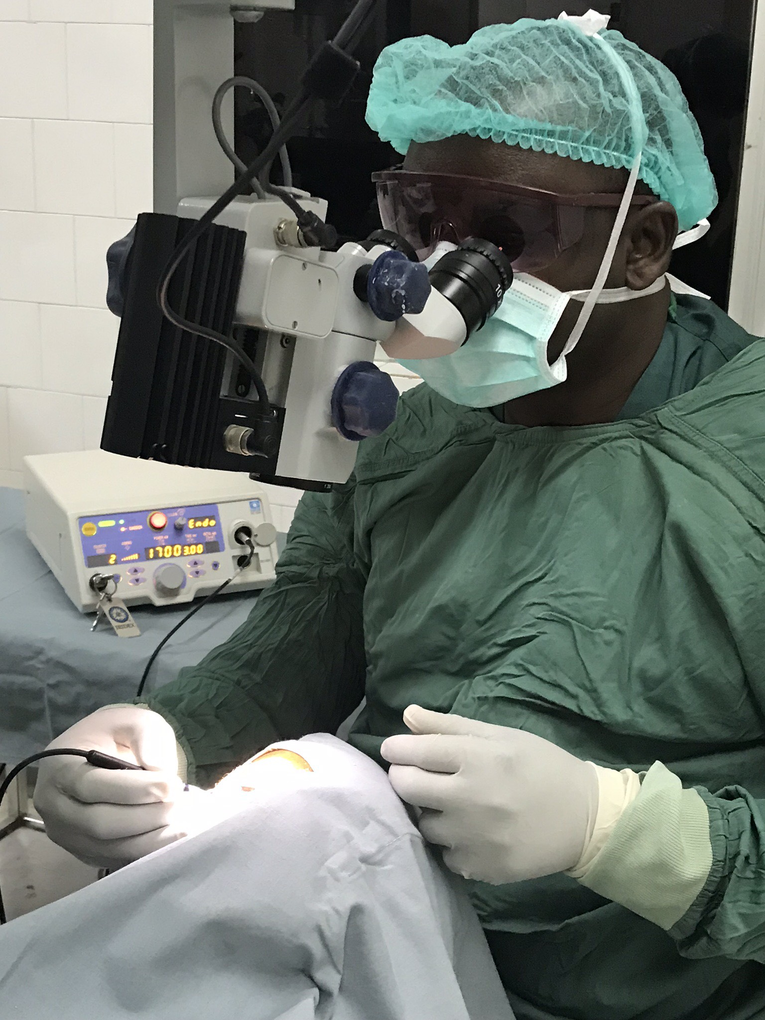 Dr A Sadiq performing TSCPC in a glaucoma patient in Nigeria