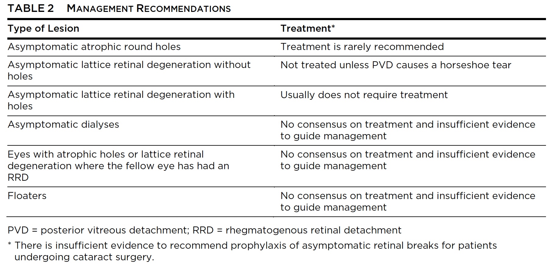 AAO Preferred Practice Patterns for treatment of lattice degeneration and associated peripheral pathology