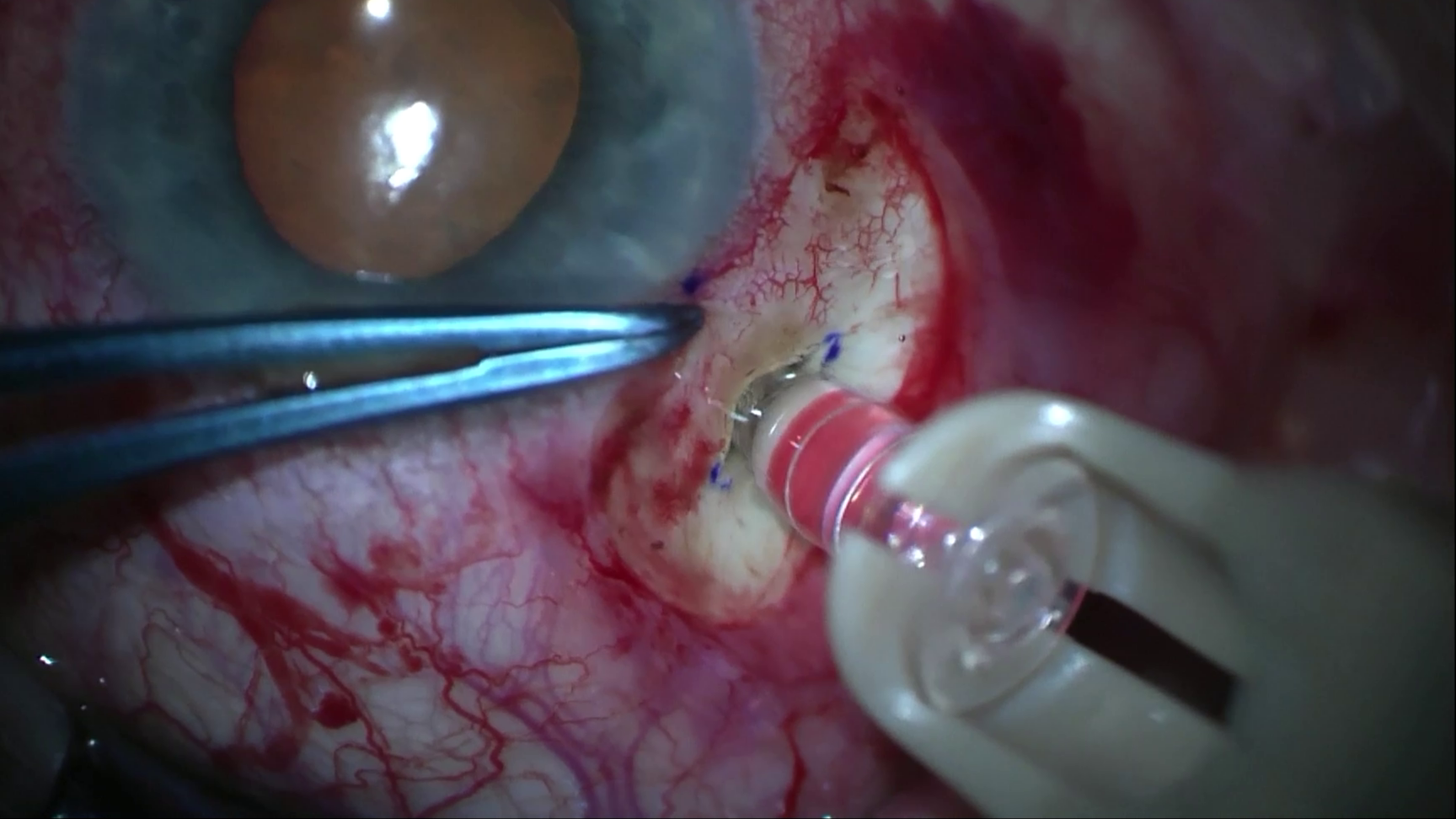 Insertion of the PDS implant into the vitreous cavity through the 3.5 mm pars plana wound.