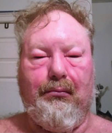 FIG. 1. External photo showing bilateral periorbital edema with malar extension and mild perioral involvement in a patient with AGS.