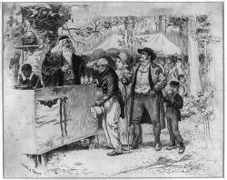 The conflict itself brought little ophthalmological advancement in techniques or anatomic knowledge, and it did not employ the remarkable innovations of the “Golden Age of Ophthalmology.”[14][5] Reasons for this included the slowness of knowledge dissemination, poor equipment, less than optimal 19th-century transportation, American physicians being preoccupied with the conflict, and most advances existing in isolation from the battlefield since they were the result of academic prowess, not wartime necessity.[5][6] Also, general hostility towards medical specialization restricted progression, manifesting itself in ophthalmology due in part to “quacks” and “charlatan[s]” (fig. 6) overrunning ophthalmic care earlier in the 19th-century.[15]