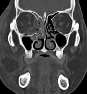 In the setting of orbital wall fracture, CT scan can often be helpful in demonstrating entrapped extraocular muscles. CT typically demonstrates linear floor fractures with minimal displacement and little or no soft tissue displacement in the maxillary antrum. However, associated soft tissue swelling, fat stranding, and muscular hematoma can often make radiographic interpretation difficult, especially in children where CT findings of entrapped extraocular tissues can be minimal. This emphasizes the importance of clinical exam using assessment of extraocular motility and forced ductions. Finally, CT can also be used o estimate the fracture area, which can be utilized as criterion for operative repair. [30]