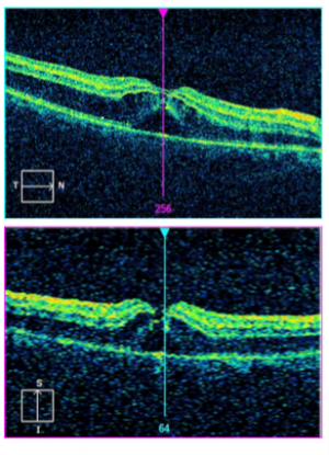 In ocular trauma, posterior segment OCT may aid in diagnosing and assessing Berlin’s edema [15], macular hole[16] [17], preretinal or submacular hemorrhage, retinal detachment, direct or indirect choroidal rupture [18] [19] ,choroidal detachment, retinal pigment epithelial tears [20], optic disc pit or traumatic retinoschisis. It is easy, quick and reliable tool for diagnosis and monitor macular and chorioretinal disease with high accuracy and precision.