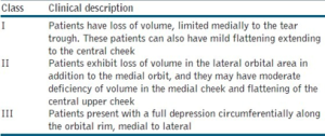 For the active inflammatory phase, supportive interventions such as artificial tears and topical anti-inflammatories are helpful to modulate symptoms. Subsequently, lubricants specifically for resulting lid retraction, nocturnal ointments for lagophthalmos, prisms for diplopia, and botulinum toxin injections for upper-lid retraction can be utilized effectively to alleviate extraocular presentations of TED.[10] Most importantly, most medical therapy options such as orbital radiation therapy are indicated to reduce inflammation and slow progression of disease, but may not be as effective in restoring volume or contour to the infraorbital region. Consequently, in conjunction with medications, advancements in oculoplastic surgical techniques have been a recent focus to work on improving cosmetic consequences from thyroid eye disease in the infraorbital region.