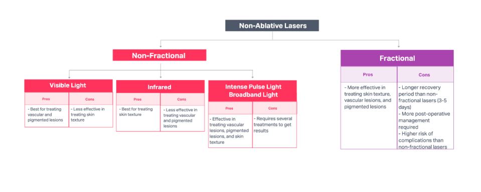 Non-ablative laser skin resurfacing can be further divided by the type of laser used: non-fractional or fractional lasers (Figure 4).
