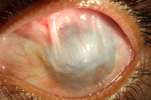 Other causes include inflammatory insults such as those seen in Steven-Johnsons Syndrome (SJS) [11], ocular cicatricial pemphigoid[12], and graft versus host disease.[13] Chronic ocular allergy, such as vernal keratoconjunctivitis, is another reported cause.[14] Neurotrophic keratopathy, whether neuronal or ischemic, can lead to this disease as well[2], as can bullous keratopathy .[15]