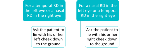- Preoperative positioning helps to prevent the conversion of the macula-on retinal detachment to macula-off.