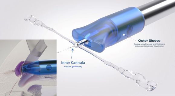 The STREAMLINE Surgical System (New World Medical, Rancho Cucamonga, CA) received the Schlemm approval on October 8, 2021. The device is single-use and disposable, consisting of a stainless-steel cutting inner cannula with a polymer outer sleeve. When the actuator button on the handset is fully depressed, the outer cannula retracts from the inner cannula tip, which pierces the TM to create a 150uM diameter goniotomy while simultaneously delivering approximately 7uL of viscoelastic for dilation of the Schlemm canal and the distal collector channels. The device is primed and loaded with enough OVD to perform the procedure approximately 8 times. The precision goniotomies can be extended to create larger goniotomies over several clock hours as needed.
