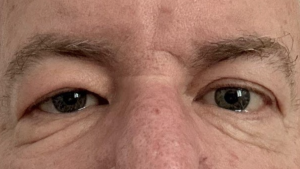 Preoperative photographs of a patient with Morbihan syndrome (above). There is decreased periocular soft tissue swelling after upper eyelid blepharoplasty with injection of steroids into all four eyelids (below). Photographs provided by Karim G Punja, MD. Patient consent was obtained for the publication of these photos on EyeWiki.- Locations most commonly involved include eyelids, forehead, glabella, and cheeks[10][18]