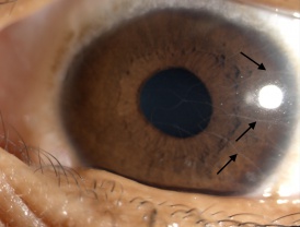 - Prominent corneal nerves (most commonly)(See Figure 1)