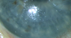 Superficial punctate keratitis (SPK) is seen clinically by using various stains on the cornea and conjunctival surfaces and grading their severity and location. Several authors have demonstrated effects of the medication and preservatives leading to SPK. Many studies have found a significant difference in SPK when comparing treatment with glaucoma medication alone versus with a preservative. The rate of SPK in patients with glaucoma receiving topical therapy can be as high as 18-54%.[12][13][14][15][16][17]