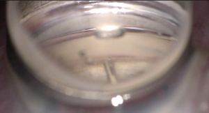 DurystaTM is a commercially available biodegradable solid matrix polymer (Figure 4). This device is placed in the anterior chamber(usually in the inferior angle) via intracameral injection through a 28 gauge needle and can deliver bimatoprost to lower IOP for up to 24 months.[52]. This is contraindicated in patients with endothelial disease or with any obstruction of the angle.
