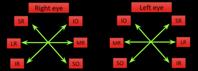 - If worse in left tilt, the left eye intorters (superior oblique and superior rectus) or right eye extorters (inferior oblique and inferior rectus) are affected