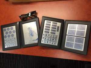 The patient is directed to put on polarized glasses. They are then shown a book with stereoscopic images (3-dimensional) and 2-dimensional images. The patient is asked to identify which pictures are stereoscopic. The book either has a titmus fly or a randot stereogram. The other side of the book has stereoscopic animals and circles. It is typical to ask the patient to identify the animals after the fly or shapes and the circles last.