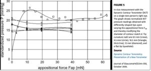 New devices such as the SENSIMED Triggerfish® and Eyemate are designed to continuously measure the IOP. Studies have found weak correlation between the SENSIMED Triggerfish® CLS data output and IOP measurements taken using the Tono-pen® XL applanation tonometer. This suggests that the Triggerfish CLS may only provide data on relative changes in the IOP rather than absolute IOP. Additionally, the validity of Triggerfish CLS at estimating IOP compared to other methods is still controversial. (37, 38)