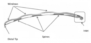 The second generation “iStent Inject” system was FDA approved in 2018. The model is smaller in dimension. It has three sections: the flange which sits in the AC, the thorax which traverses the TM, and the head which sits in the Schlemm’s canal. The head features four outlets that are 50 microns each.