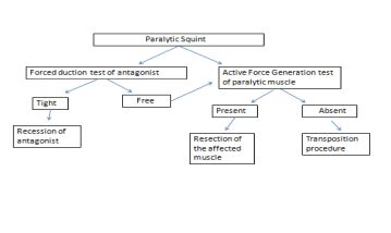 - Paralytic strabismus: the most common indication. Transposition surgeries must be planned only when the forced duction test is free and active force generation testing confirms lack of function of the affected muscle.