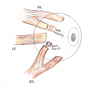 - ↑ Phamonvaechavan P, Anwar D, Guyton DL. Adjustable suture technique for enhanced transposition surgery for extraocular muscles. J AAPOS 2010;14:399-405.)