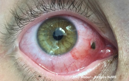 - Conjunctiva: Apparent or occult lacerations (self sealed) or hemorrhagic chemosis which may hide deeper penetrating lacerations or a foreign body.