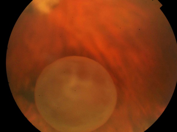 - Risks of argon laser photocystotomy: Nork and Milecchia[13] reported an inadvertent retinal burn that occurred during argon green laser photocystotomy. This complication is more likely if the cyst is close to the posterior pole (due to cyst transparency) and the fovea can be damaged.